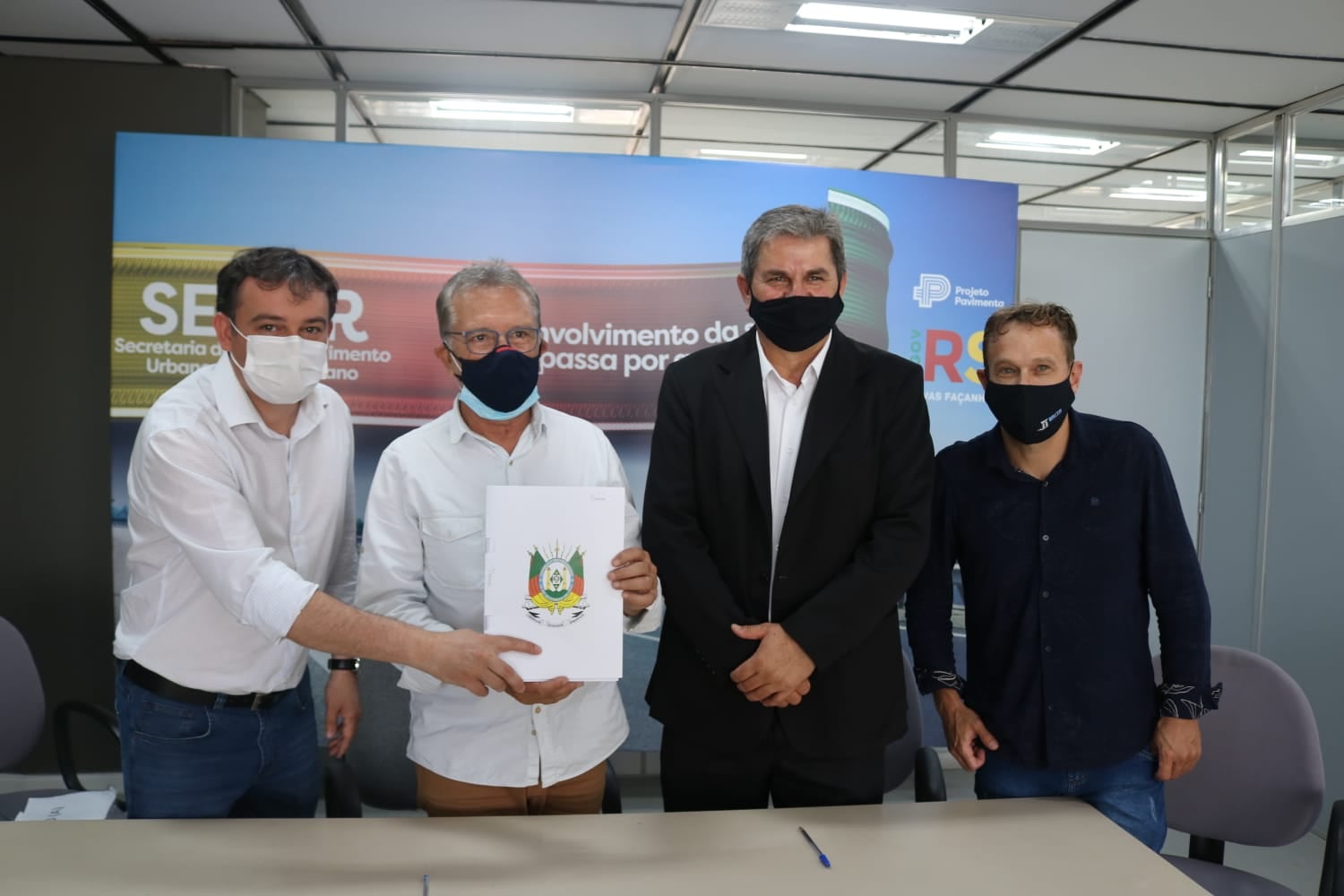 Foram 3 dias de intenso trabalho na Secretaria de Desenvolvimento Urbano e Metropolitano, no Centro Administrativo em Porto Alegre, onde o secretário Luiz Carlos Busato e sua equipe receberam centenas de prefeitos para assinatura de convênios entre o governo do Estado e municípios no âmbito do programa Pavimenta.