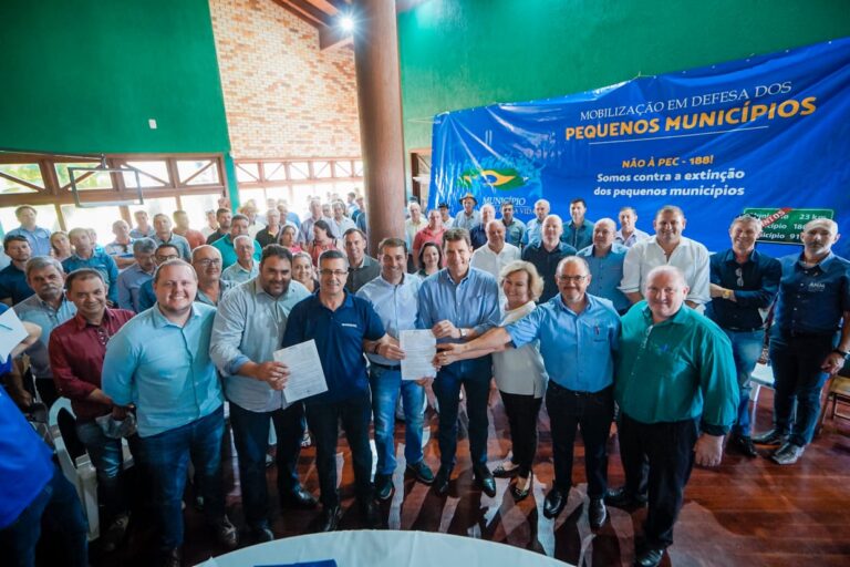 Ao lado do senador Luis Carlos Heinze (PP) e do deputado federal Alceu Moreira (MDB), presidente da Frente Parlamentar da