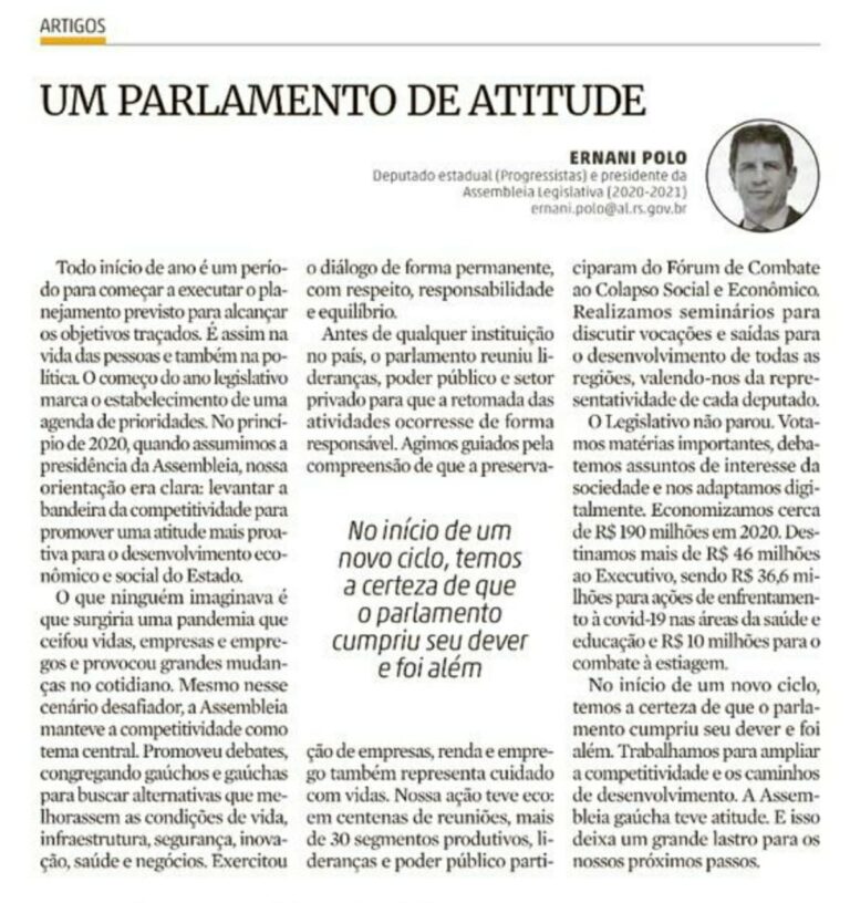 Confira artigo publicado do presidente Ernani Polo, nesta sexta-feira, 29, em Zero Hora.