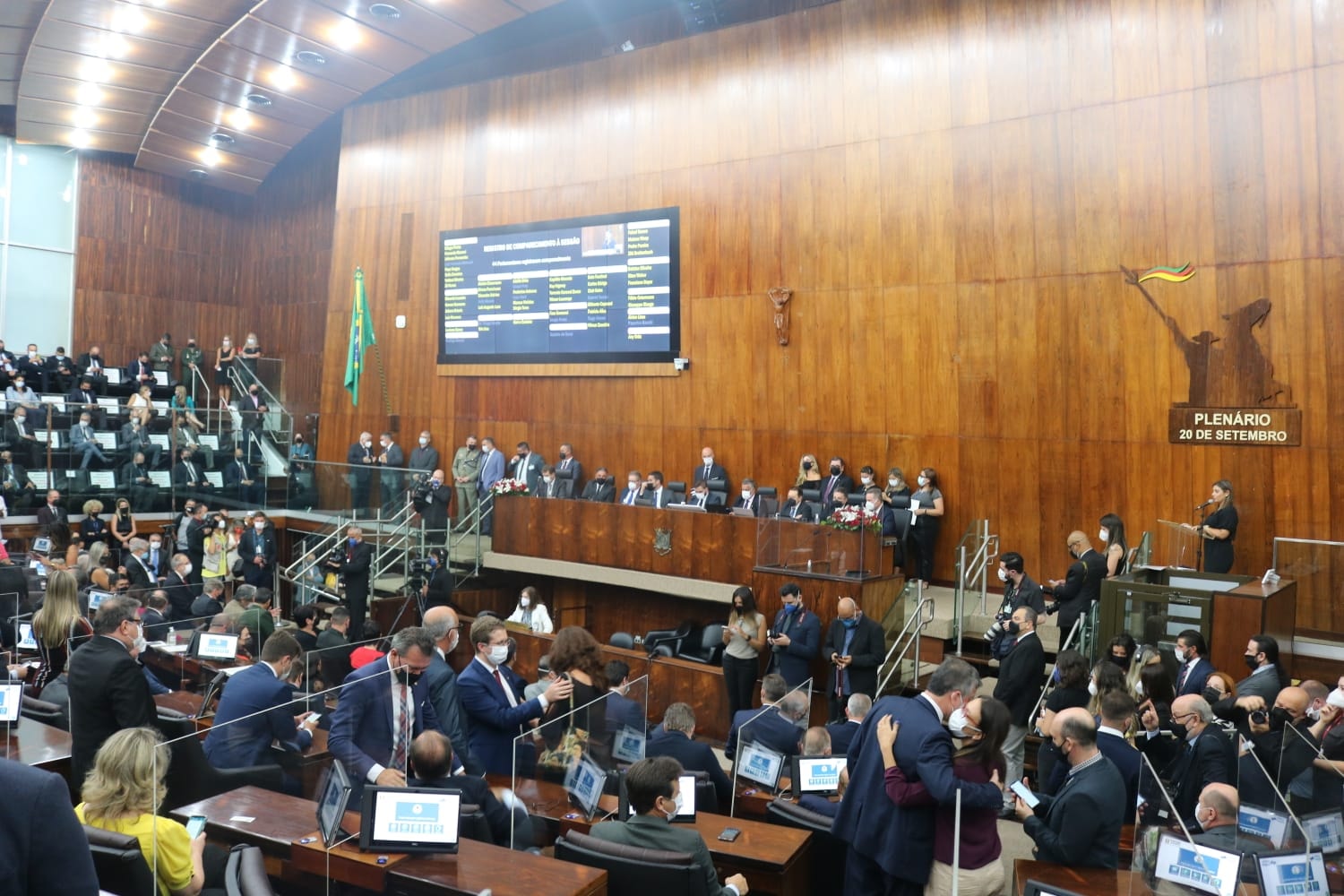Participei na tarde desta segunda-feira, na presença do governador do Estado, Eduardo Leite, de representantes dos poderes e demais autoridades, da eleição da nova mesa diretora da Assembleia Legislativa para o período 2022/2023, onde o colega deputado Gabriel Souza deixou a presidência, assumindo agora como presidente o deputado Valdeci Oliveira.